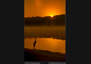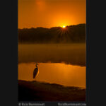 Salt Fork Lake weaves through the center of Salt Fork State Park in eastern Ohio. The 3,000 acre lake is home to the longest inland beach in the state. It is a popular home to Osprey, Red-shouldered Hawks, Kingfisher, Spotted Sandpipers and occasional herons. After spending days watching the sunset over the lake this heron landed and stood on the shore watching sunset and became silhouetted by the last glowing light of day. [Photo 10278]