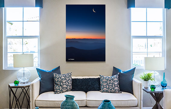 During the 4-weeks I spent living inside this park as artist-in-residence I traveled on an unlighted narrow 2-lane road in the dark four days in a row to photograph the moon near sunrise from atop the 6,643 foot tall Clingmans Dome in the Great Smoky Mountains National Park, Tennessee. On each of the first three days the sky and mountain ranges were hidden by dense fog or snowstorms or the moon was too high in the sky. But, on the forth day, with cool temperatures, clear weather and the crescent moon perfectly positioned in the sky the moment was ideal to capture this beautiful scene. [Photo 1674A]